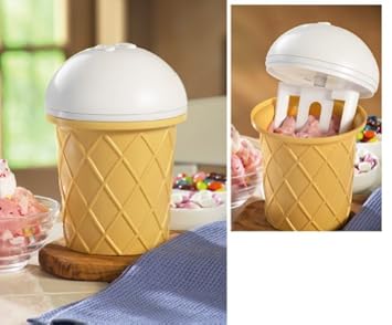 Ice cream is always fun to eat now it s fun to make, too. This cone-shaped maker is easy to use: just add ingredients, turn it on and place in freezer! Requires 4 "AA" batteries (not incl.). Plastic. 25-oz. capacity. 5"L x 5"W x 7 1/2"H....