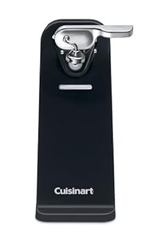 Style, convenience, and power come together in the Cuisinart electric can open. With chrome accents and elegant contours, it fits nicely with other modern countertop appliances. The easy single-touch operation effortlessly opens any standard size can. The precision Power Cut blade and strong magnetic lid holder are attached to the removable lever, which can be easily detached for quick cleanups. A stable design with a wide base for extra sturdiness and solid construction, it won't tip or slide. Simply place the can under the guideposts and press the lever for effortless opening!